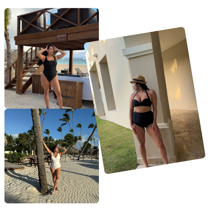 Our swimwear uses 360° compression technology providing an all around snug & shaping fit.